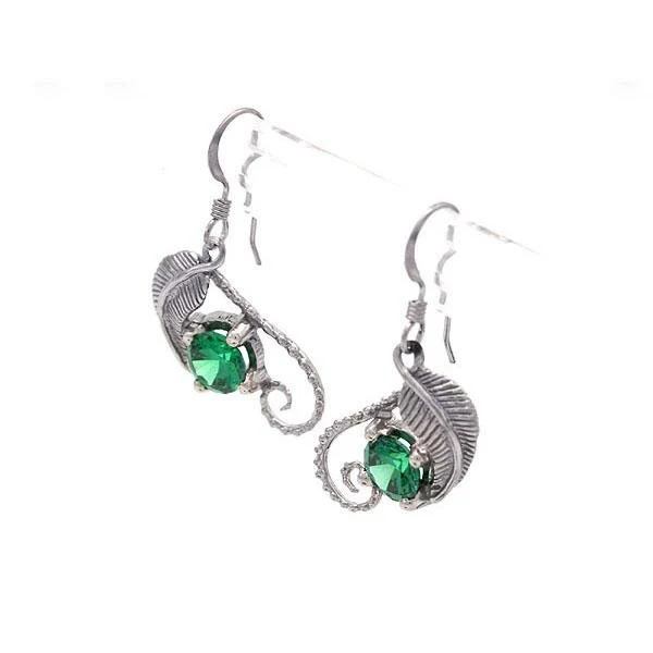 Details: The Mirkwood Elven Earrings are solid sterling silver and are rhodium plated to prevent tarnishing. The Elven earrings dangle from French ear wires. Each earring is set with a 6.5 mm round emerald green cubic zirconia and measure 20.5 mm long, 12.5 mm at the widest point and 4 mm thick at the gemstone. The earrings weigh 4.2 grams (2.1 grams each) in sterling silver.