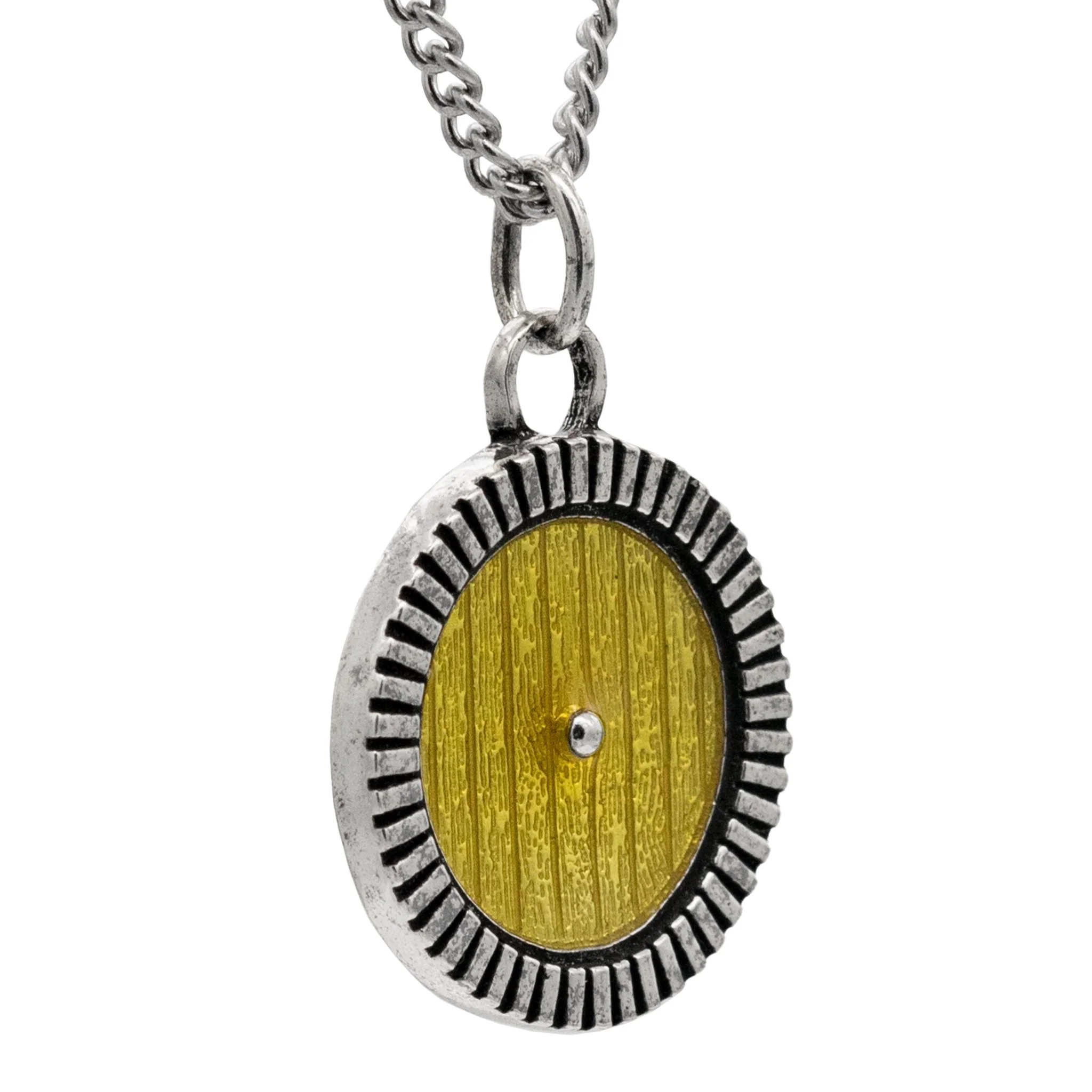 The village of Hobbiton is distinctive because of its iconic circular Hobbit Hole doors. The pendant features the cheery door from the home of Samwise Gamgee, the faithful friend of Frodo Baggins in The Lord of the Rings trilogy.